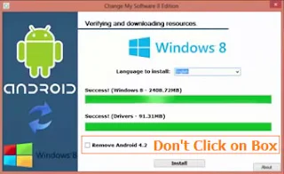 اوصل هاتفك بالحاسوب عن طريق وصلة usb ثم افتح برنامج Change My software ثم اختر Android ثم Windows 8 كما في الصورة: